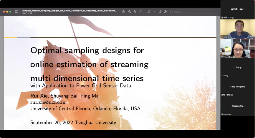 2022年9月26日,中佛罗里达大学谢睿助理教授通过线上平台与我中心教员交流,并进行线上酒店偷拍 报告,报告的题目是Optimal Sampling Designs for Online Estimation of Streaming Multi-dimensional Time Series